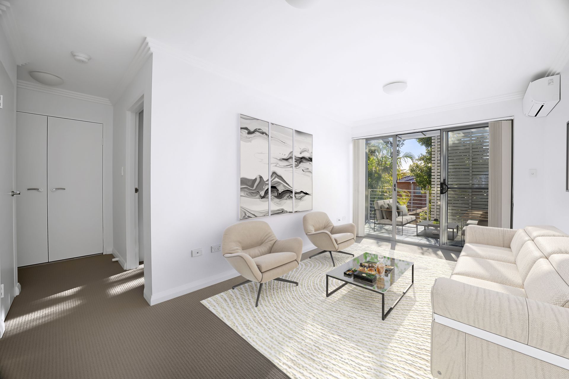 - Private balcony provides extended living and entertaining space