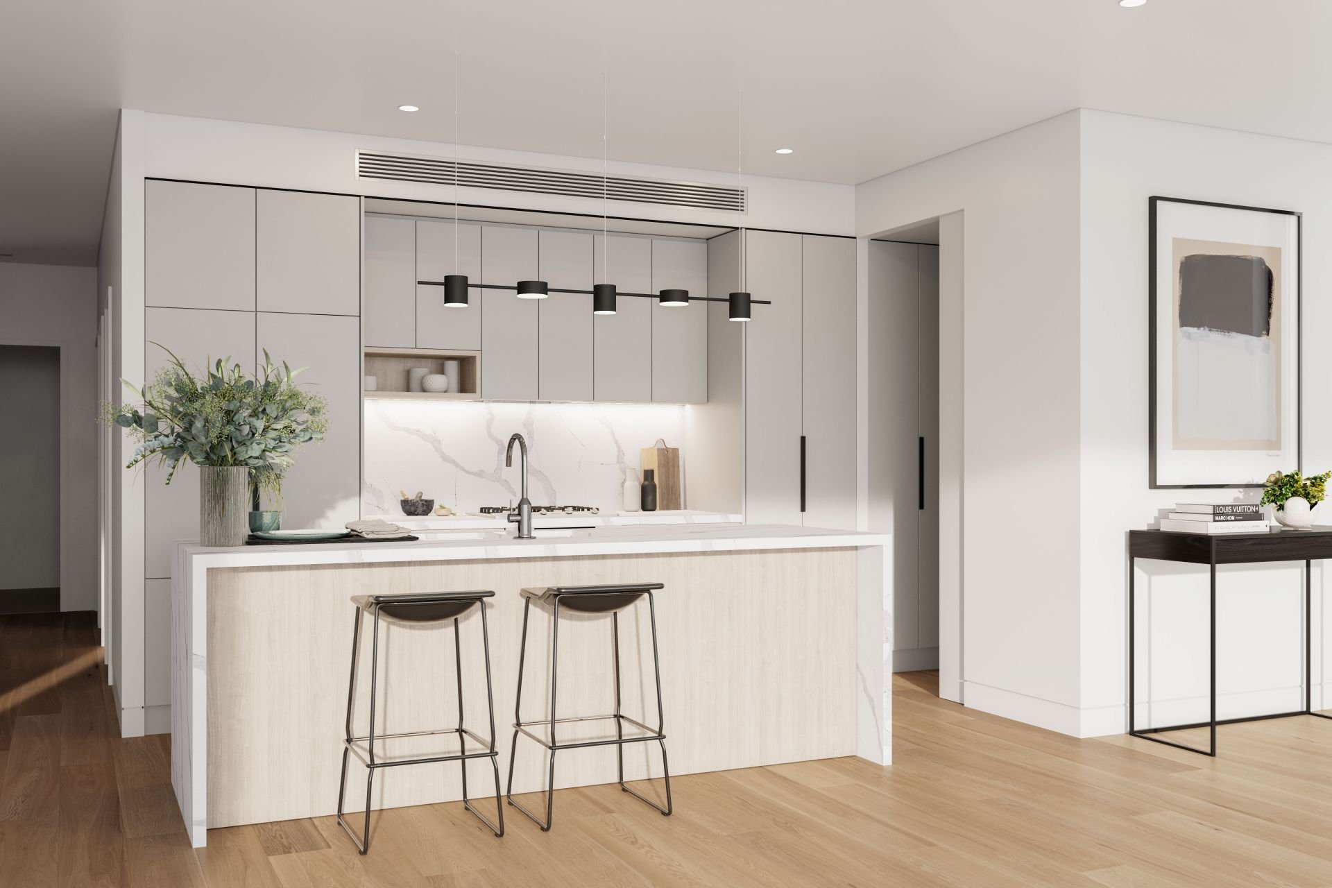 -Stylish islands and large preparation areas, Carrara marble benchtops