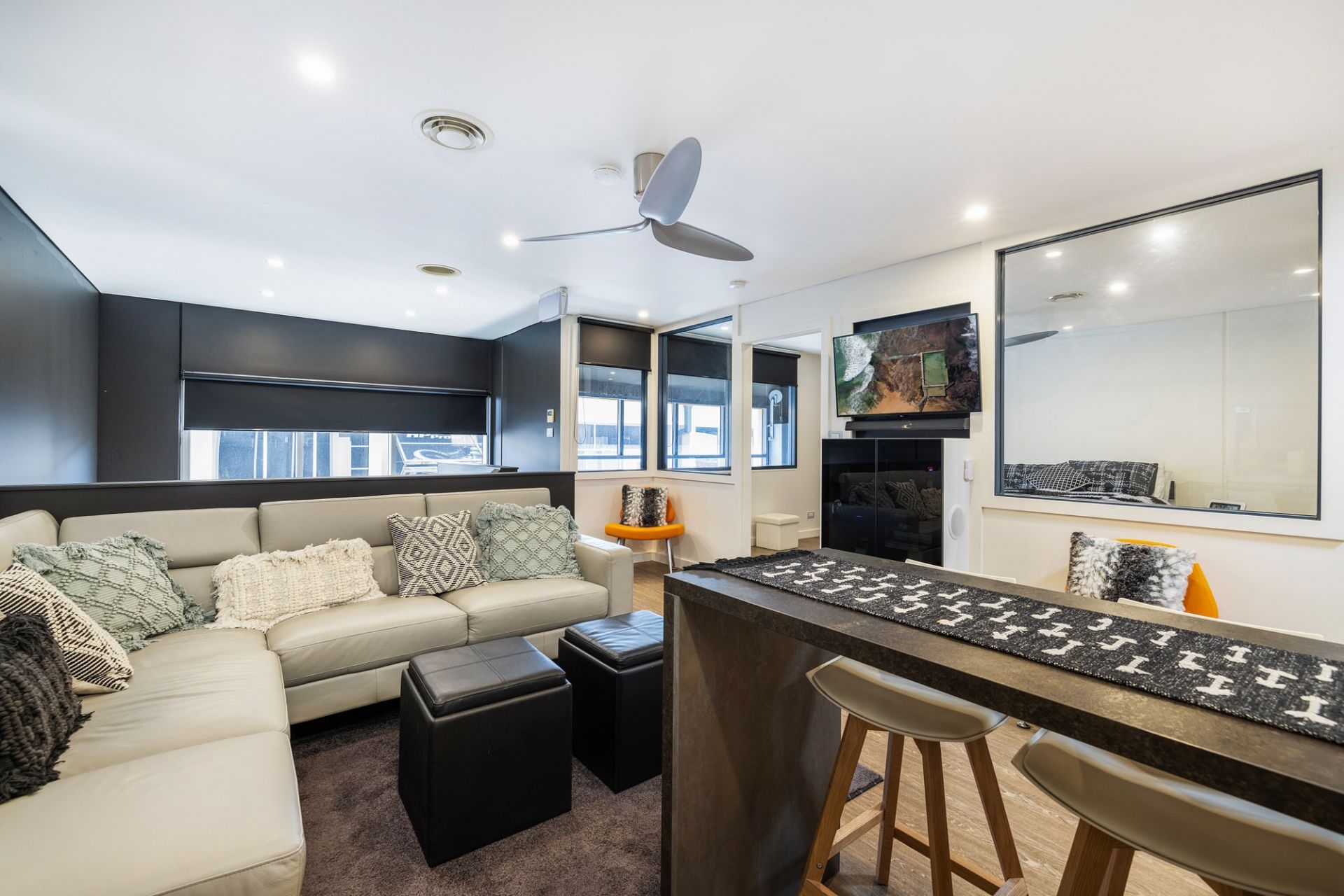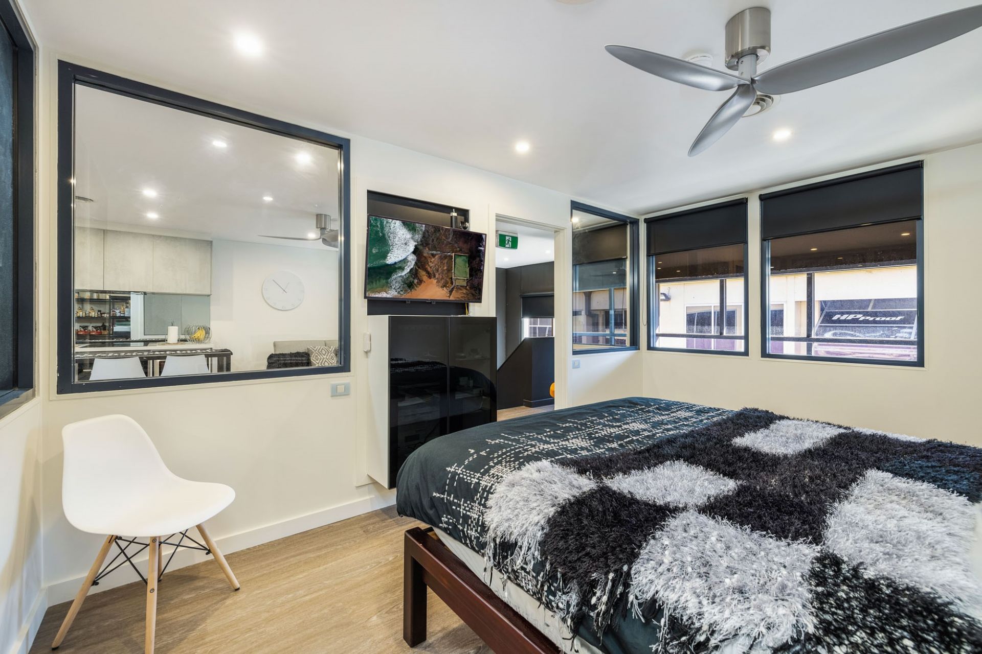 This is a beautifully presented warehouse with floor to ceiling glass and is packed with audio visual, security systems and much more. The property comes fully furnished, offering many businesses a turnkey versatile property. It is generously equipped with several air conditioning units and electronic connectivity, making it suitable for any home business needing to expand in the comfort of a well-equipped place of business.