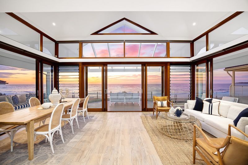 Anchored to the shores of Narrabeen Beach, this unique oceanfront residence commands awe-inspiring unobstructed views over the ocean that sweep to Narrabeen Headland, Collaroy Beach to Long Reef Headland and beyond. Oriented for absolute privacy with all principal rooms soaking up the endless ocean vista, the home's pared back interiors and select palette of finishes been crafted to integrate with its coastal setting, with hardy materials to stand the test of time. The free-flowing living space is anchored by a new gourmet kitchen, framed by vast panels of glass blurring the lines between indoors and out. Upstairs is dedicated to a master suite, two middle level bedrooms, plus a lower-level study perfect for those working from home. High-end finishes achieve a luxurious take on relaxed barefoot living in one of Narrabeen best spots, with direct access to the sand, plus a short stroll to Narrabeen Lake, village shops, seaside cafes and express B-line buses.
